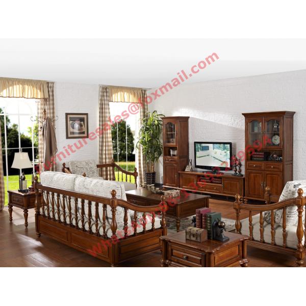 Solid Wooden Carving Frame with Fabric Upholstery Sofa Set in Living Room Set Images |